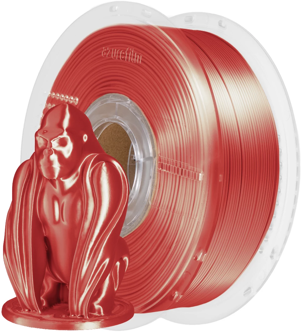PLA Silk by AzureFilm is an easy-to-print filament that delivers exceptional colour effects with a velvety look and a high-gloss finish. Combining standard PLA properties with a striking aesthetic, it is ideal for printing decorative elements such as vases, figurines, accessories, and household items.