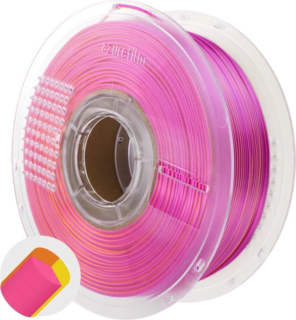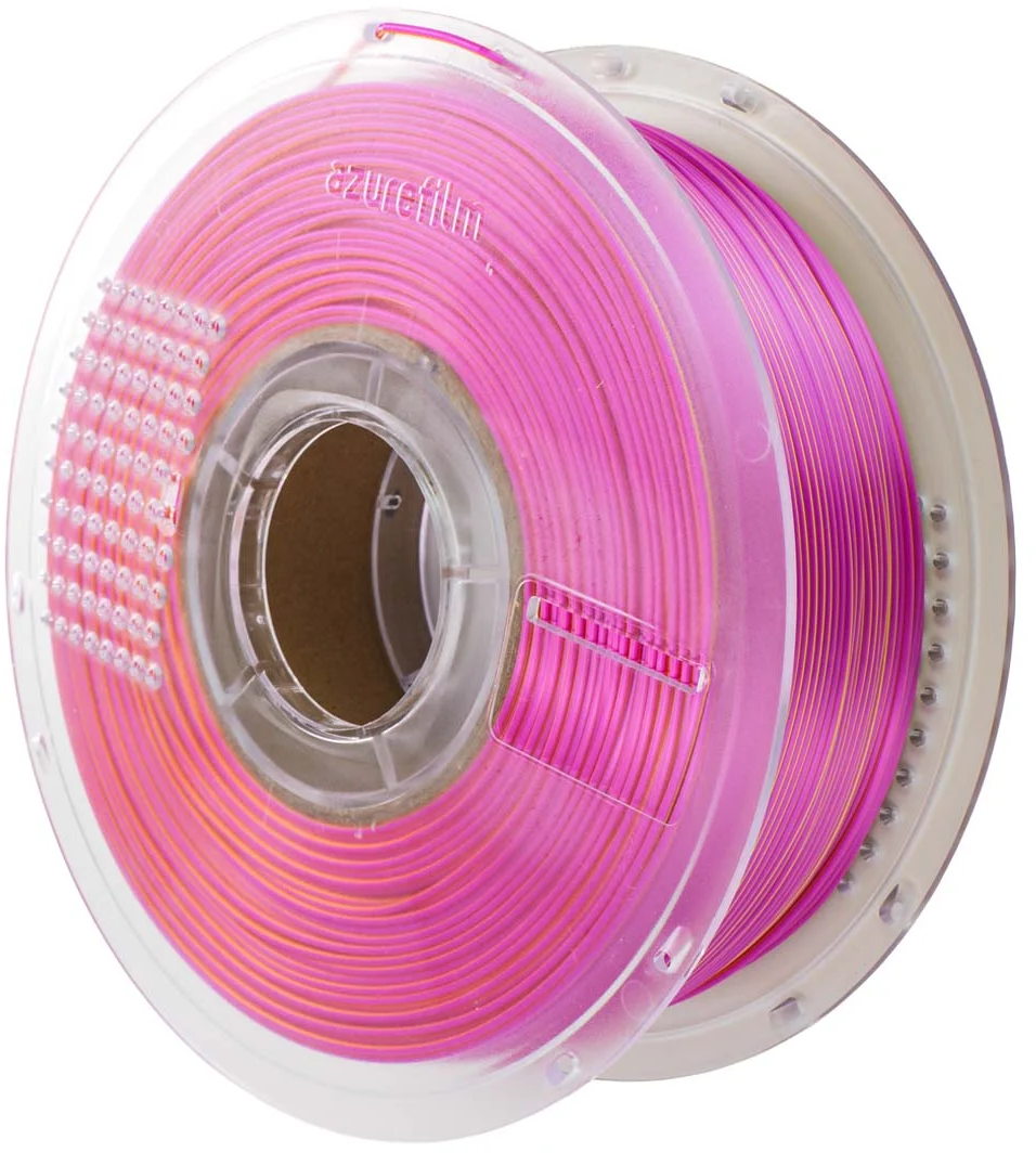 AzureFilm PLA Silk Multicolor adds not just colour but a touch of elegance to your prints. This filament combines the hassle-free handling of PLA with a silky, glossy finish that gives every object a premium look. Thanks to its special formulation, layer lines are beautifully concealed, giving your models a seamless, polished appearance.