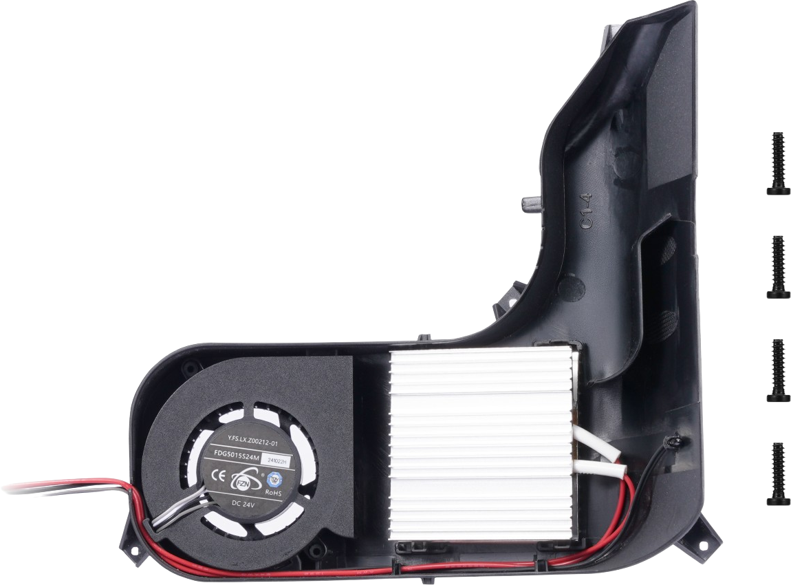 The Bambu Lab AMS 2 Pro Heating Unit is one of the central elements of the Bambu Lab AMS 2 Pro drying system. Each unit consists of a powerful heating element, a precisely controlled fan and temperature-accurate sensors. Together, they enable efficient, uniform and safe filament drying at temperatures of up to 65 °C.
