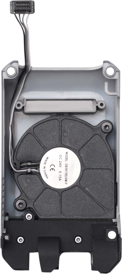 The Bambu Lab Toolhead Front Cover Assembly consists of the front cover and the part-cooling fan. It is securely attached to the middle frame of the toolhead with magnets, allowing quick and easy tool-free access. This assembly ensures efficient cooling of the print parts while protecting the front components of the print head.