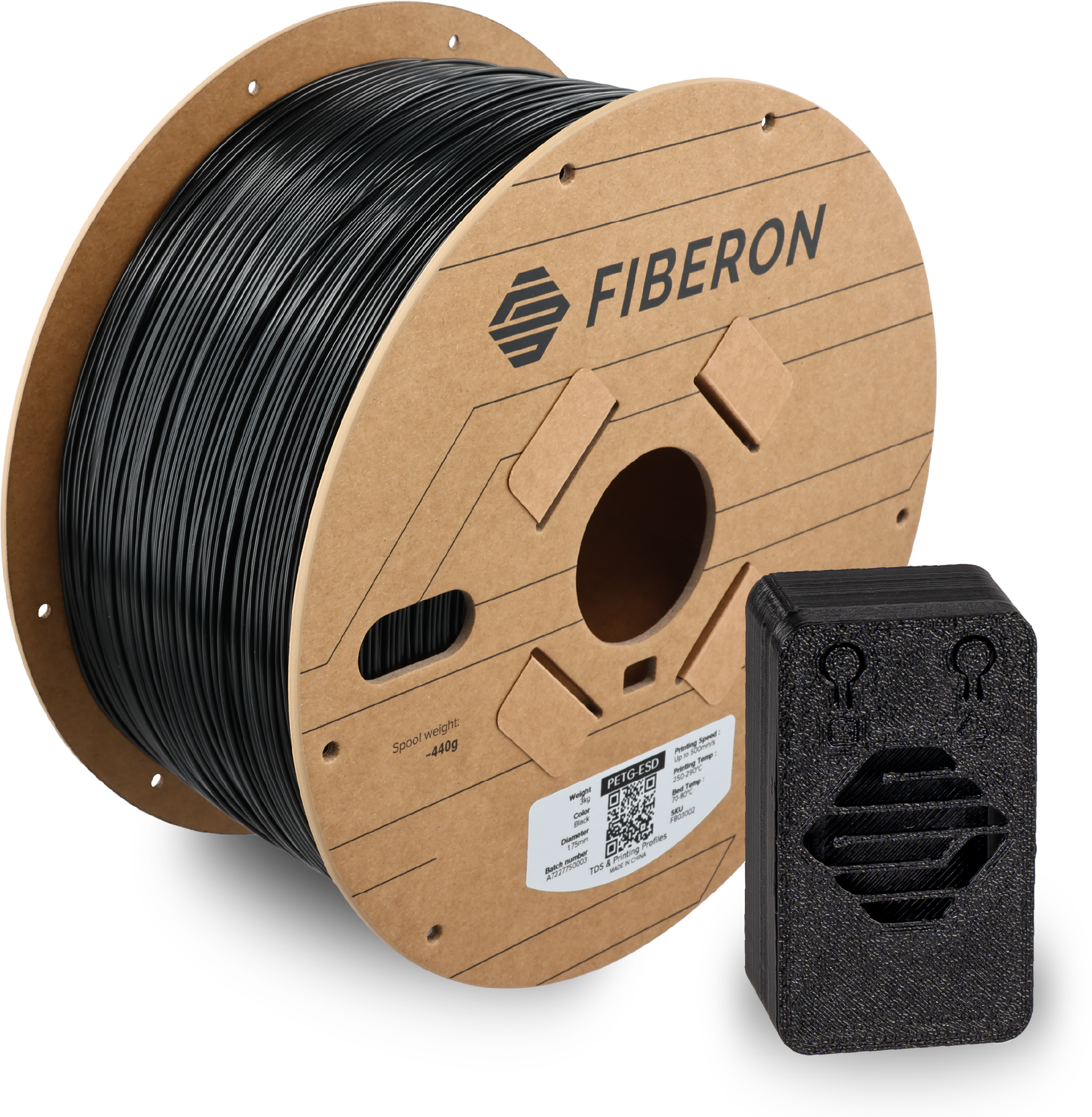 With Polymaker Fiberon™ PETG-ESD you get a high-performance filament that combines durability and protection for your electronic projects. Through the targeted addition of carbon nanotubes, this PETG filament offers reliable electrostatic dissipation (ESD). The exceptionally low surface conductivity ensures that electrostatic charges are dissipated, keeping sensitive electronic components safely protected during assembly.