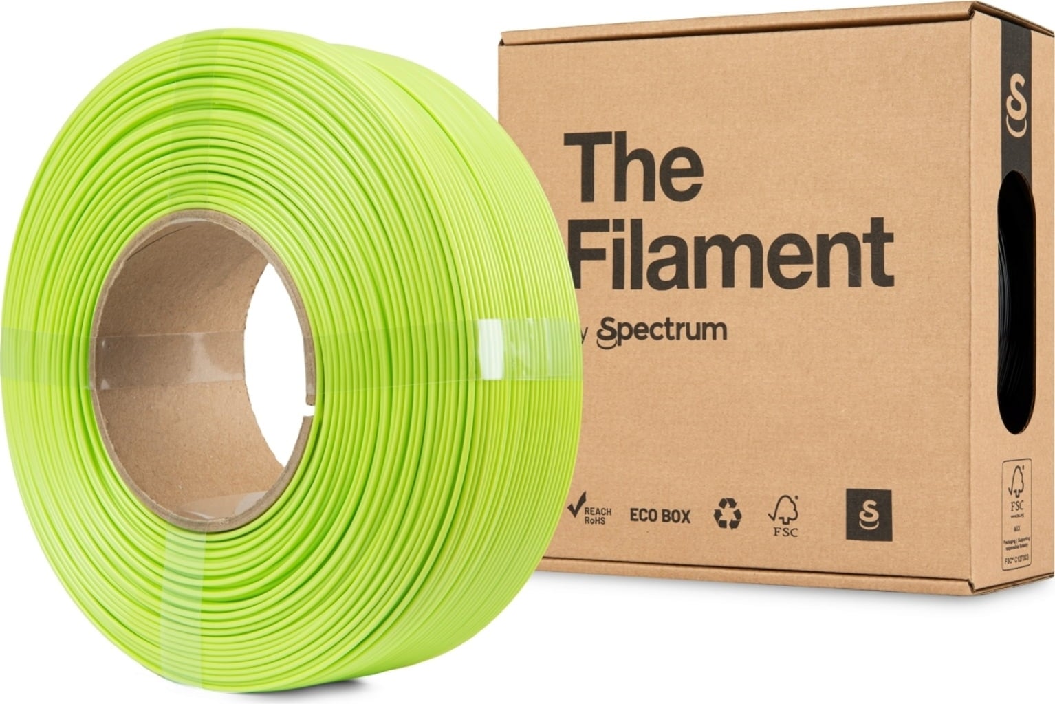 This ReFill is a spool-less PETG filament wound on a cardboard core. It is compatible with reusable Bambu Lab Spools and 3D-printed Spectrum ReFill spools*, and requires no additional adapters.