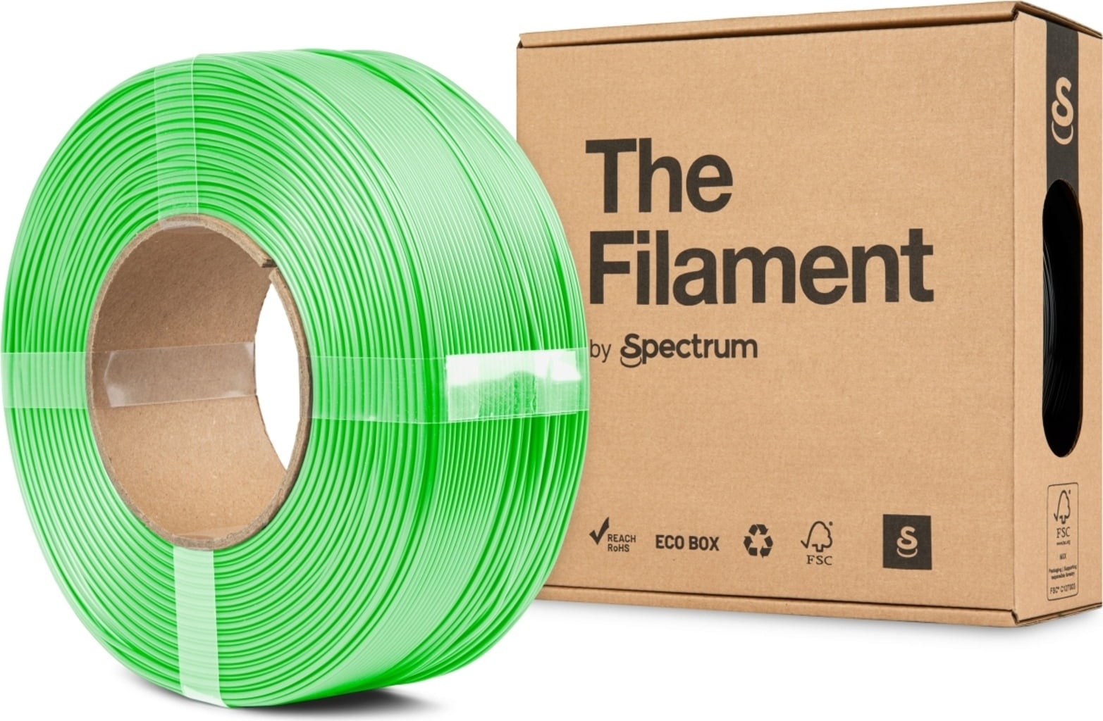 This ReFill is a spoolless PLA filament wound onto a cardboard core. It is compatible with reusable Bambu Lab Spools and self-printed Spectrum ReFill spools*, and does not require any additional adapters.