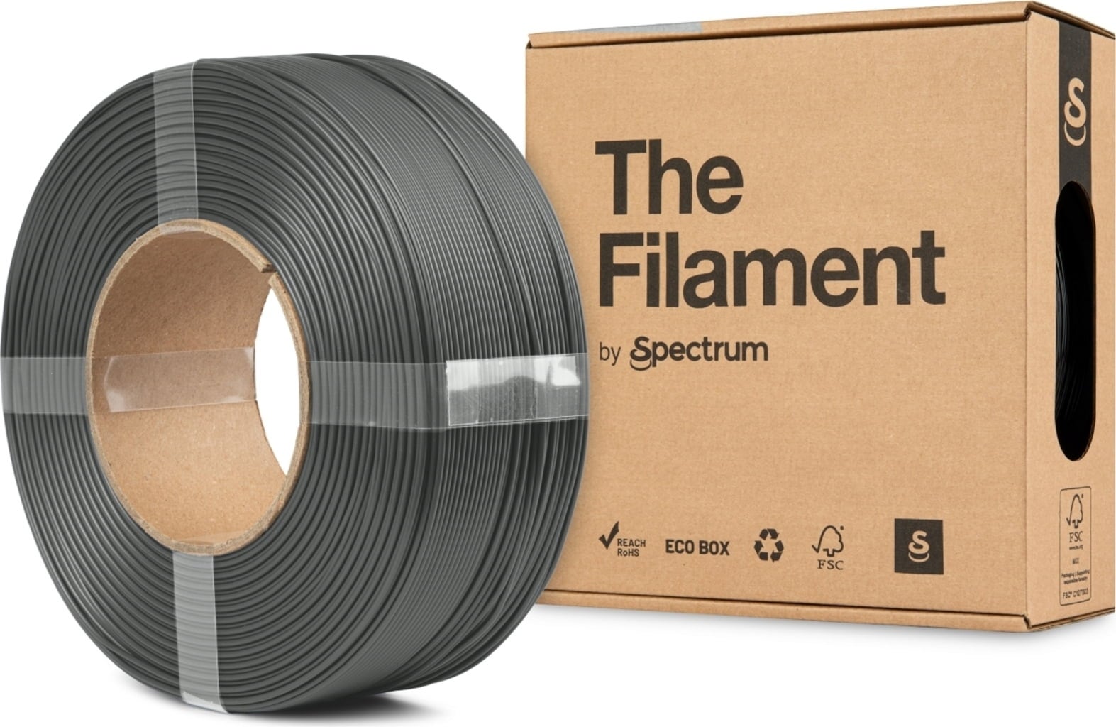 This ReFill is a spool-less PLA filament wound onto a cardboard core. It is compatible with reusable Bambu Lab spools and self-printed Spectrum ReFill spools*, with no additional adapters required.