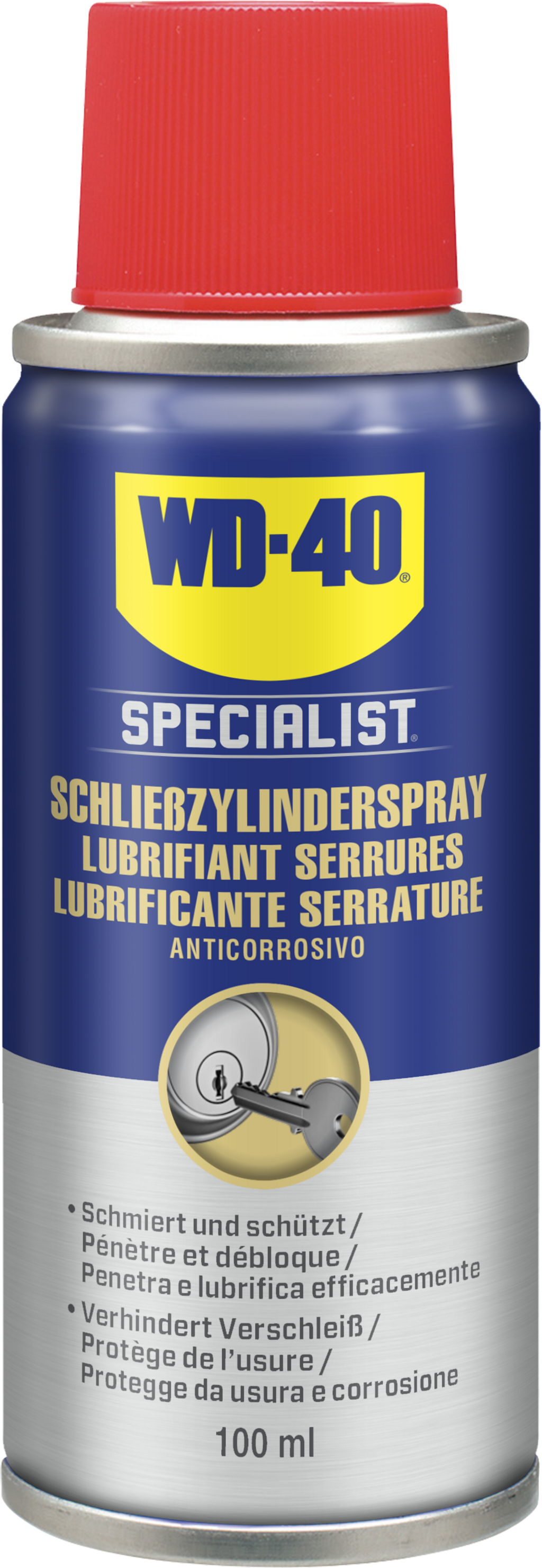 The WD-40 Specialist Lock Cylinder Spray has been specially developed for the maintenance and care of lock cylinders. Its silicone- and grease-free formula provides reliable lubrication without gumming up or leaving residues.